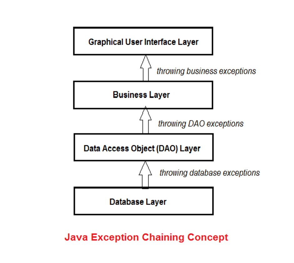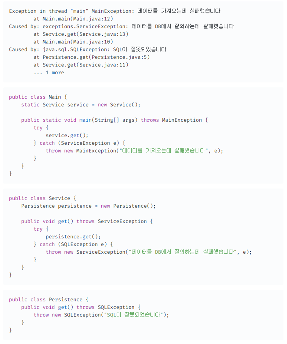 상위 계층으로 예외가 전달될 때 마다 새로운 예외에 포함시켜 다시 던지는 과정