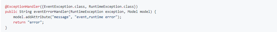 @ExceptionHandler는 특정 예외가 발생한 요청을 처리하는 핸들러이다. MVC 컨트롤러 안에서 어떤 요청을 처리하다가 에러를 직접 만들어 발생시키거나 또는 자바에서 기본적으로 지원하는 예외가 발생했을 때, @ExceptionHandler로 정의해서 그 예외들을 어떻게 응답을 보낼지를 설정할 수 있다. @Controller, @RestController가 아닌 @Service 나 @Repository 가 적용된 Bean에서는 사용할 수 없다.