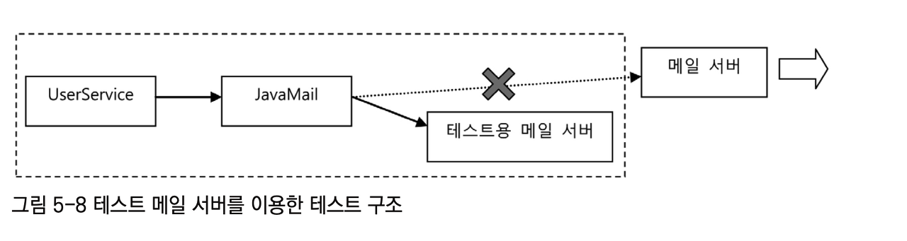 실제 메일 전송을 수행하는 JavaMail 대신에 테스트에서 사용할, JavaMail과 같은 인터페이스를 갖는 목 오브젝트를 만들어서 사용하면 문제는 모두 해결된다.