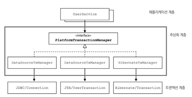 5장에서는 DAO에 트랜잭션을 적용해보면서 스프링이 어떻게 성격이 비슷한 여러 종류의 기술을 추상화하고 이를 일관된 방법으로 사용할 수 있도록 지원하는지 살펴보자.