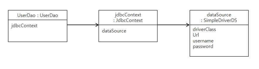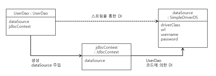UserDao가 분리된 JdbcContext를 DI 받아서 사용할 수 있게 만든다.